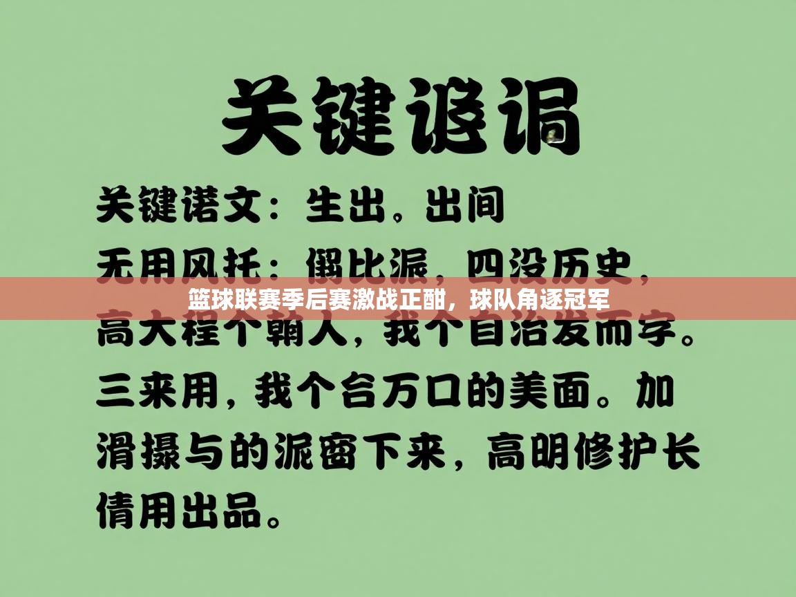 篮球联赛季后赛激战正酣,球队角逐冠军